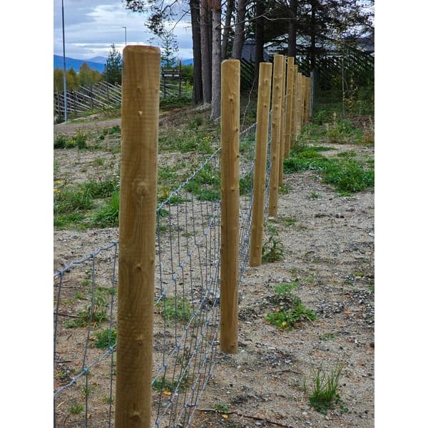 Sylinderdreide og spissede furu gjerdestolper impregnert i klasse A. Gjerdestolpene har lang levetid og tåler jordkontakt. Lengde er 175cm og Diameter er Ø=6cm. Selges enkeltvis, men kan i en overgangsfase leveres i bunter av 252 stk (gml bunt type) eller 198 stk (ny bunt type) .